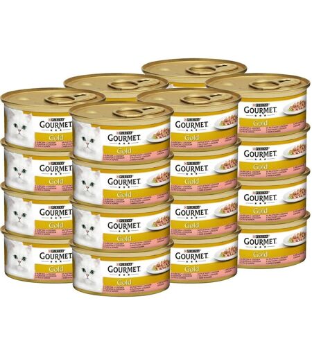 Gourmet Gold Laks & Kylling 24x85 g – Smakfullt våtfôr for voksne katter Gourmet Gold Laks & Kylling er et delikat våtfôr som består av møre kjøttbiter i en nydelig saus, laget for å tilfredsstille selv kresne katter. Den smaksrike kombinasjonen av laks og kylling gjør hvert måltid til en ekte nytelse for katten din. Fôret er et helfôr som gir den voksne katten din et balansert og næringsrikt måltid. Det kan også serveres som et smakfullt kompliment til kattens vanlige kost – perfekt når du vil by på noe ekstra godt. Hvorfor ikke gi det som et festmåltid når du vil skjemme bort katten din?Egenskaper: ? Nydelig smak: Kombinasjonen av laks og kylling lokker selv kresne katter. Kjøttbiter i saus: Møre biter i smaksrik saus for ekstra nytelse. Helfôr: Balansert og næringsrikt fôr for voksne katter. Fleksibelt bruksområde: Serveres som et komplett måltid, eller som et komplement til kattens vanlige kost. Anbefaling:? Server Gourmet Gold Laks & Kylling som en del av kattens daglige kost. Sørg for at katten din alltid har tilgang til friskt vann. ...