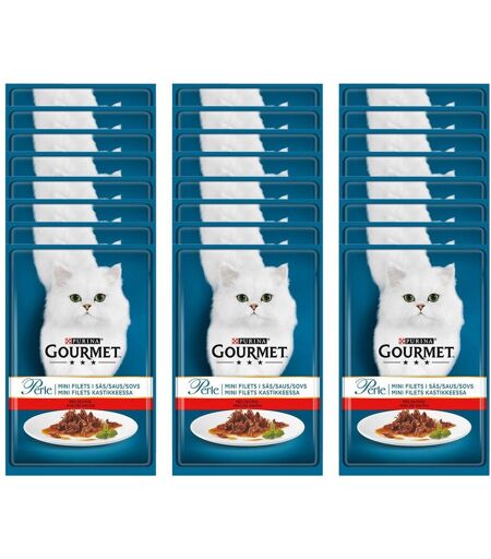 Gourmet Perle Minifileter i Saus Oksekjøtt 24 x 85 g Denne storpakningen med våtfôr består av 24 porsjonsposer med smak av oksekjøtt som kommer i en herlig saus. Selv de mest kresne katter pleier å elske dette våtfôret! Fôret passer for voksne katter og kan serveres både som et komplett fôr eller som et tilleggsfôr. De praktiske porsjonsposene gjør at hvert måltid smaker like friskt og godt! Kattemat som kommer i saus, slik som denne, er en utmerket måte å tilføre væske til kattens kost. Gourmet Perle Minifileter i Saus Oksekjøtt 24 x 85 g: Storpakningen består av 24 porsjonsposer Komplett fôr for voksne katter Oksekjøtt Fôringsguide Til en voksen katt (4 kg), gi 3–4 poser om dagen fordelt på minst to måltider. Gjennomsnittsmengden for en voksen katt er basert på normalt aktive katter i normalt klima. Individuelle behov kan variere og mengden kan tilpasses etter behov slik at katten opprettholder en slank og sunn kroppsvekt. Serveres romtemperert. Det skal alltid være rent og friskt vann tilgjengelig for katten. ...
