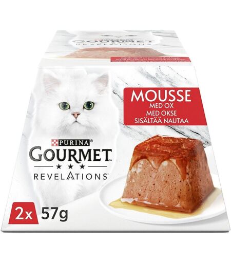 Våtfôr for katter – Gourmet Revelations Beef 2 x 57 g Gourmet Revelations Beef er et førsteklasses våtfôr for katter laget av nøye utvalgte ingredienser. Våtfôret har myk og glatt mousse-konsistens som katten din vil elske. Hovedingrediensen er proteinrikt biffkjøtt. Det er også tilsatt viktige vitaminer og mineraler som gir katten all den næringen den trenger for å holde seg sunn og sterk. Naturlig våtfôr uten fargestoffer – våtfôr for katter – Gourmet Revelations Beef 2 x 57 g Gourmet Revelations Beef er 100 % fritt for fargestoffer, kunstige konserveringsmidler og smaksstoffer. Den unike pyramidepakningen inneholder to måltider på 57 g våtfôr i hver pakke. Oversikt Gourmet Revelations Beef Våtfôr for katter Hovedingrediensen er proteinrikt biffkjøtt. Uten fargestoffer og kunstige konserveringsmidler ...