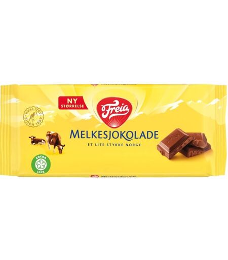 Dette er Norges mest solgte sjokolade, elsket av generasjoner. Den velkjente platen byr på ekte Freia Melkesjokolade laget med melk fra norske kuer, noe som gir en fyldig og kremet smak av høy kvalitet.Platen på 100g passer perfekt enten du vil kose deg alene, dele med noen du er glad i eller ha litt ekstra energi i sekken på tur. En ekte klassiker som aldri går av moten – det er ikke uten grunn at mange omtaler den som «et lite stykke Norge».Dato: 24.02.2026Innhold: 100g sjokoladeplateSmak: Ren melkesjokoladeLaget med melk fra norske kuerPerfekt til tur, kos eller som gaveAllergener: Melk, soya. Kan inneholde spor av gluten og nøtter.Merke: FreiaEAN: 7622202257346🍫 Se også vårt utvalg av flere Freia-plater og andre klassikere på lager nå!Alle våre produkter er trygge i bruk, overholder standarder, og sendes fra vårt lager i Norge med lynrask levering 🌟📦Nøkkelord: norsk sjokolade, melkesjokolade plate, klassisk sjokolade, sjokolade fra Freia, turmat søtt, sjokolade uten fyll ...