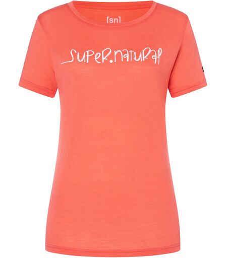 super.natural Women's Signature Tee Living Coral/Fresh White XS