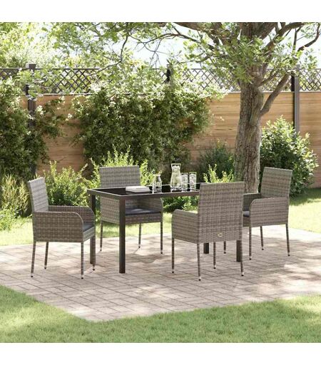 vidaXL Hage Spisegruppe med pute 5 pcs Grå Poly rattan