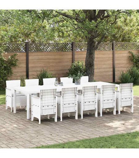 vidaXL Hage Spisegruppe 11 pcs Hvit og lys grå Rattan og polyester