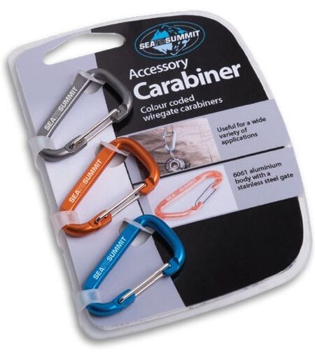 Praktiske små karabinkroker fra Sea To Summit er perfekt til å for eksempel feste utstyr til sekken eller henge opp teltlykten i teltet. OBS: Må IKKE brukes til klatring Karabinkroker fra Sea To Summit Pakke med 3 Ikke til klatring ...