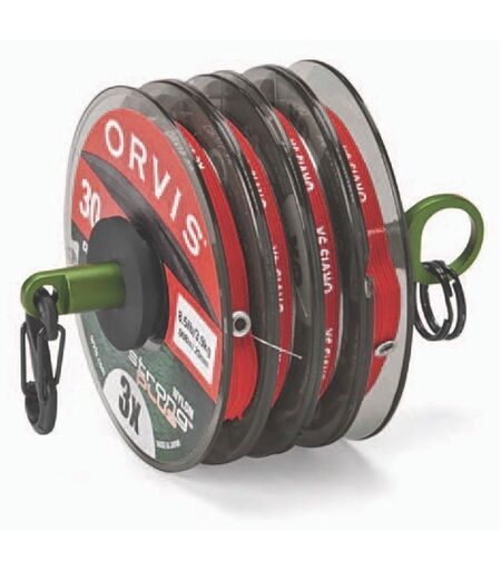 Hold orden på flere spoler med sene eller fortom. Denne holderen har plass til opptil 7 spoler og er laget i aluminium. Kan festes på fiskeveska eller beltet, eller bare brukes som oppbevaring for spolene. Fortomsholder fra Orvis Holder opptil 7 spoler Materiale: Anodisert Aluminium ...