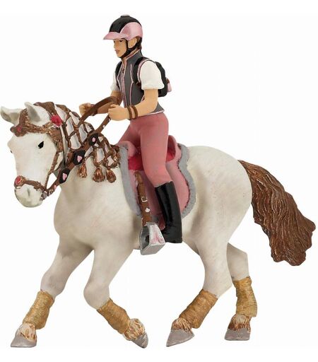 Mål: 4,5 x 3 x 9 cm.Ikke egnet for barn under 3 år.Håndmalt med utrolig realisme. Anatomien til hesten og rytteren er respektert i alle detaljer.Ponni ikke inkludert.KOMPOSISJON: PVC. Teksten er maskinoversatt. ...