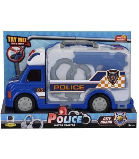 Kul politibil med utstyr og håndtak som gjør det lett å bære den med seg.Inneholder 7 deler.Mål: 34 cm.Alder: 3+Batteri: 2xAG13 (inkludert)EAN: 4892429208428 ...