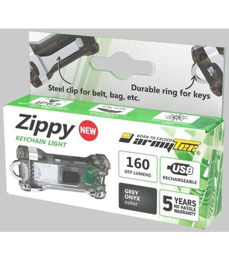 Superpraktisk liten LED lykt til å ha på nøkkelknippet, eller klipses på sekk, caps, lue osv. Kvalitetslykt fra det tyske merket Armytek.Lykten er flat og tar liten plass i lommen eller vesken. Den har et innebygd batteri på 100mAh, oppladbart med Micro USB kabel som kobles i mobillader etc (ladekabelen medfølger ikke, men vanlig standard som de aller fleste hjem har mange liggende). Størrelse: 59x25x9mmVekt: kun 12g3 lysnivåer:160lm - 17min50lm - 1time5lm - 10timerPakken inneholder: 1stk Zippy lykt farge grå 1stk brukermanual ...