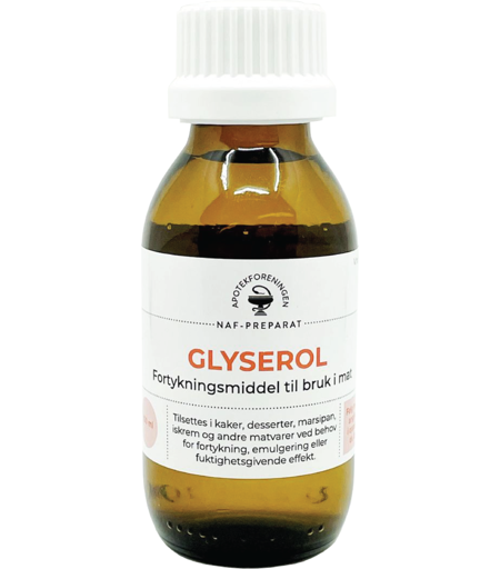 Glyserol NAF er et tilsetningsstoff til kaker, sukkertøy og iskrem. Glyserol NAF er en fargeløs, tyktflytende væske med en søtlig smak som brukes som fortyknings- og søtningsmiddel i mat og drikke. ...