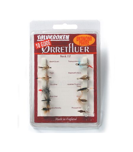 Ti fluer som lokker ørreten til hugg! Settet består av følgende fluer: March Brown Olsen Zulu Silver Black Gnat Coch-y-Bondhu Telemarkskongen Greenwell’s Glory Heckham Peckham Green Brown Pheasant Tail ...